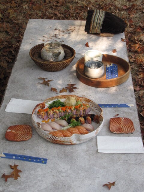 Hank Murrow – Shino serving platter with migrating geese and fall leaves