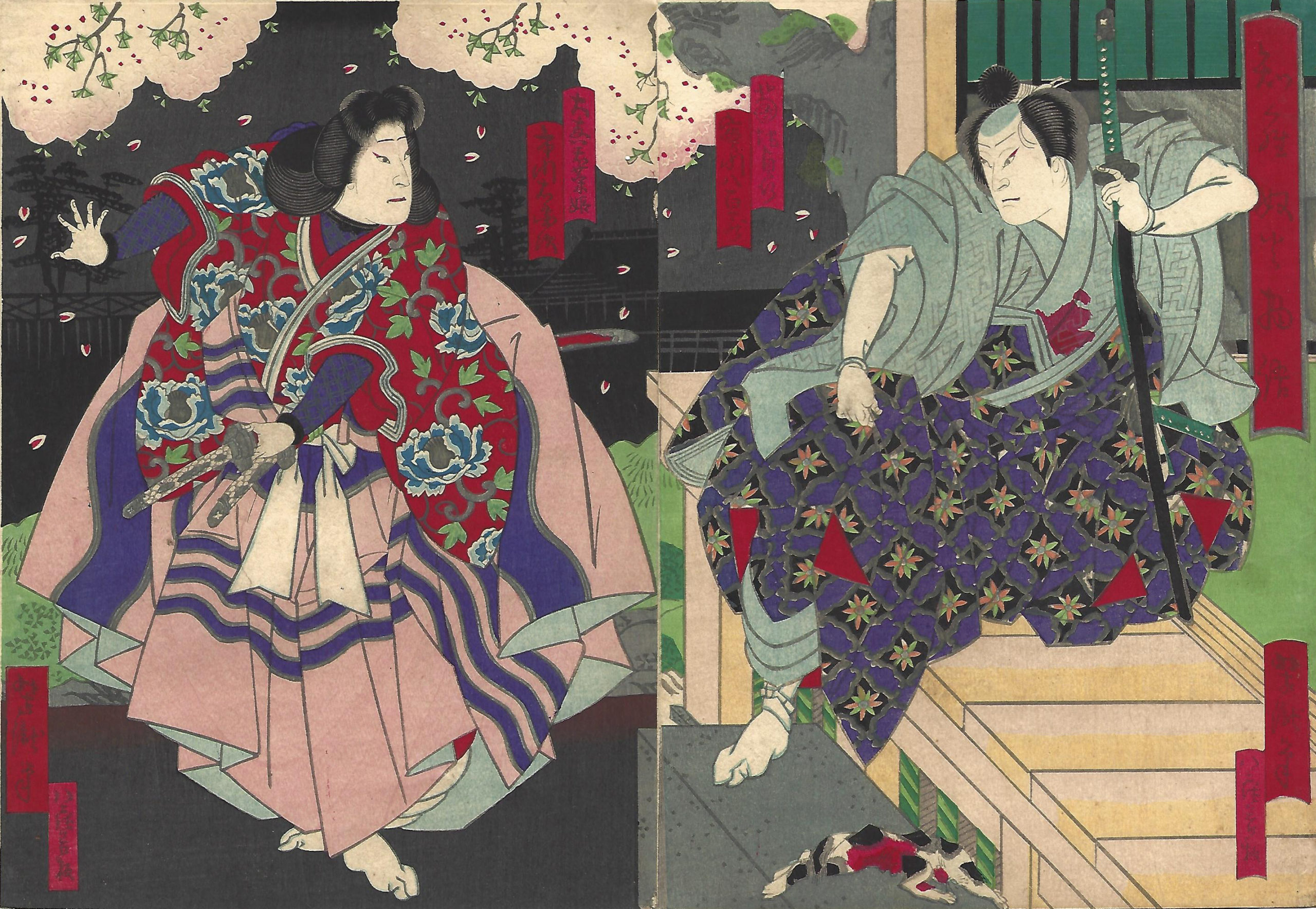 The Tale of Shiranui is one of vengeance and magic, following the story of Princess Wakana, whose family was murdered by the Kikuchi clan while she was young. She was saved by a tsuchigumo, a giant magical earth spider, and taught combat and wizardry. In this scene Princess Wakana is disguised as a man and clad in chainmail she prepares to cross swords with one of the Kikuchi retainers, Akisaku. One of the men who slaughtered her family, Akisaku is depicted as a man so ruthless and evil that he kills animals for sport.